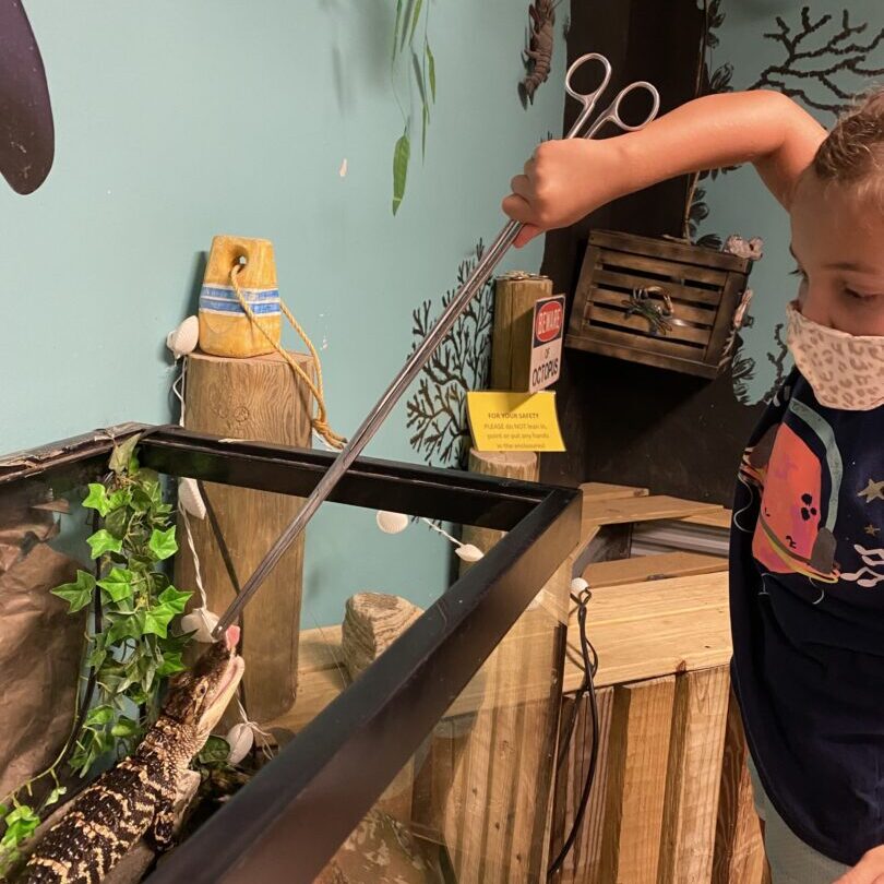 Wonder what it is like to be a zookeeper? Led by one of our animal keepers, this in-depth experience is for older students who are serious about learning animal husbandry and medical care of animals. Students will get to tour around the facility and learn specific information and needs of our animal collection. Students will get to not only encounter animals in our behind-the-scenes animal room, but also assist with animal care, food prep, training, & cleaning. This is a very hands-on experience like no other! If you want to stay all day and join the water fun- bring your suit and towel and join our campers and play field games, get wet, join the fossil dig and sluice, and cool off with a snow cone!
